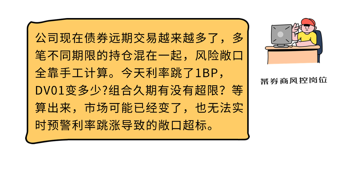 風控一體化。嵌入DV01、交易對手信用風險敞口等多維度指標,聯(lián)動限額監(jiān)控系統(tǒng),主動規(guī)避市場沖擊。